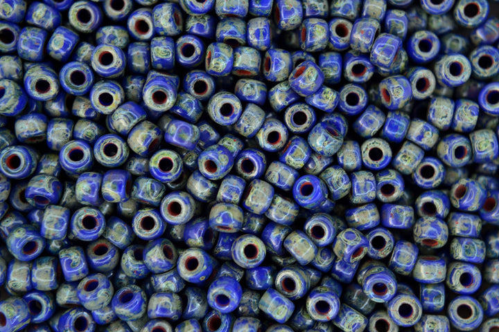10g Matubo 6/0 Round Czech Seed Beads 4mm Opaque Blue Picasso