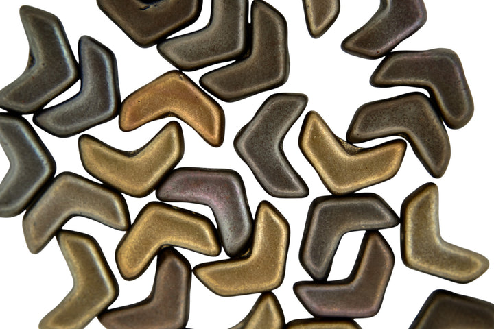30x Chevron Duo Tschechische Rocailles 4x10mm Mattes Metallic-Leder