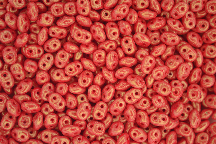 100g WHOLESALE Matubo SuperDuo Czech Seed Beads 2.5x5mm Stardust Opaque Coral Red