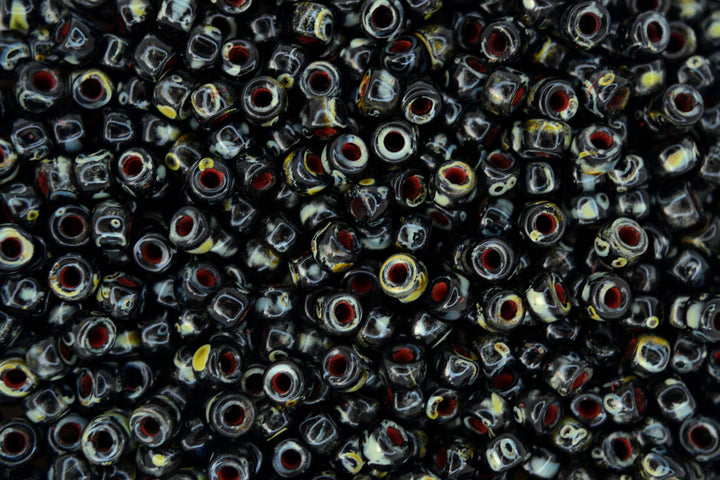 10g Matubo 6/0 Round Czech Seed Beads 4mm Jet Picasso