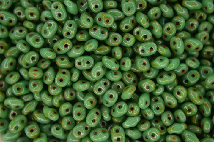 10g Matubo SuperDuo Czech Seed Beads 2.5x5mm Turquoise Green Travertine Dark
