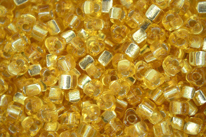 10g MIYUKI 5/0 Triangle Japanese Seed Beads 5mm 1102 Silver Lined Gold