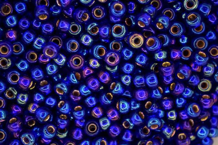 10g MIYUKI 6/0 Round Japanese Seed Beads 4mm 91020 Silver Lined Cobalt AB