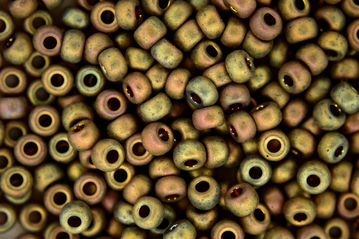 10g MIYUKI 6/0 Round Japanese Seed Beads 4mm 92035 Matte Metallic Khaki Iris