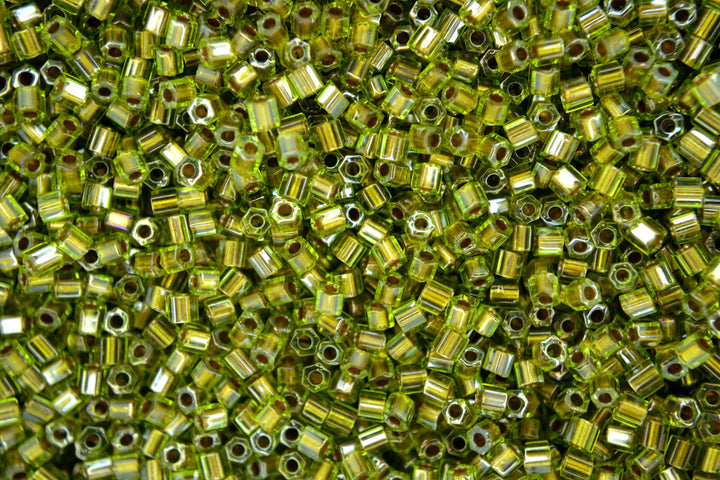 10g TOHO 11/0 Hexagon Japanese Seed Beads Size 2mm 991 Gold Lined Peridot