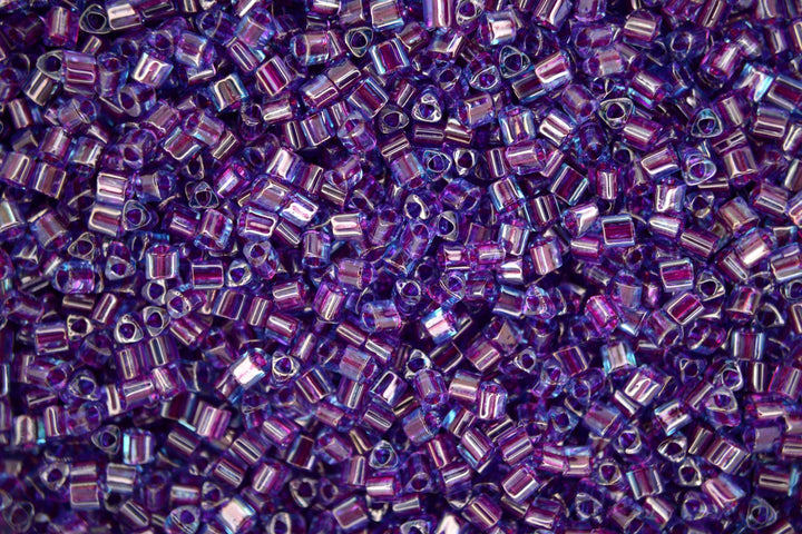 10g TOHO 11/0 Triangle Japanese Seed Beads 2mm 252 Inside Color Aqua/Purple Lined