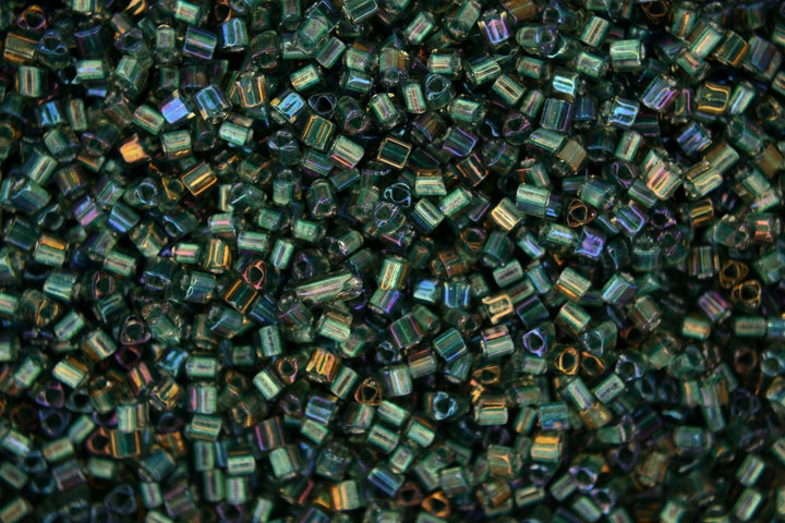 10g TOHO 11/0 Triangle Japanese Seed Beads 2mm 270 Inside Color Crystal/Metallic Teal