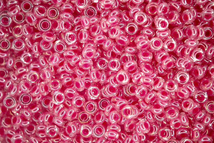 10g TOHO 8/0 Demi Japanese Seed Beads 3mm 1082 Inside Color Crystal/Fuchsia Lined