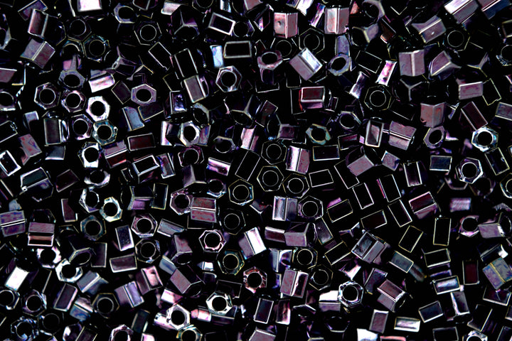 10g TOHO 8/0 Hexagon Japanese Seed Beads 3mm 90 Metallic Amethyst Gunmetal