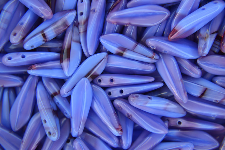 25x CzechMates Dagger Czech Beads 5x16mm Blue Raspberry Swirl