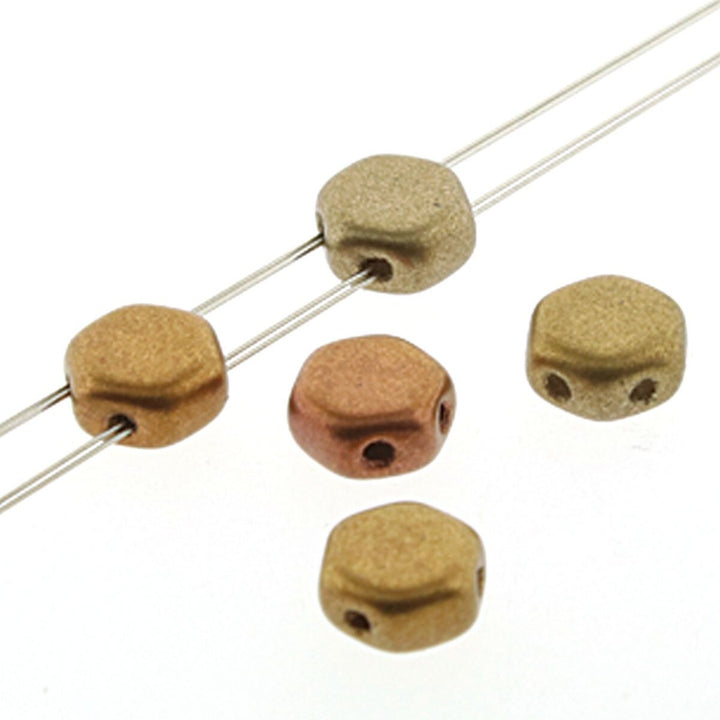 30x Honeycomb 6mm Czech Beads are a beautiful addition to any beading project. These Czech pressed glass beads feature two parallel holes enabling them to be strung in a honeycomb pattern by alternating top and bottom holes. They come in a variety of colors, including Crystal AB, Matte Metallic Copper, and Hematite. Each string contains 30 beads. Add these beads to your collection today and create stunning jewelry pieces that will last a lifetime.
